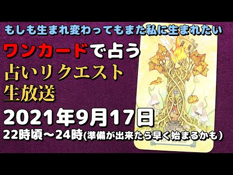 ワンカードでタロット占いをするリクエスト生放送です。 リクエスト希望の方は以下を必ずご確認ください。 【今回の放送時間】 2021年9月17日(金) 開始時間:22時頃予定(準備できたら早くなるかも...
